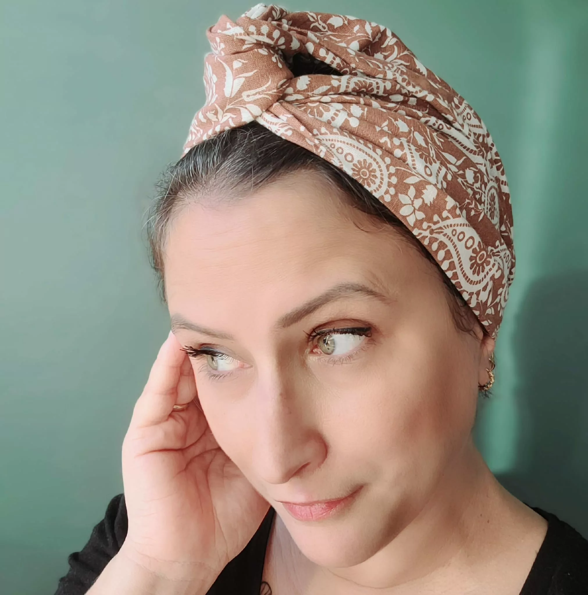 Le Turban Jeanne se noue facilement et s’ajuste selon vos envies.